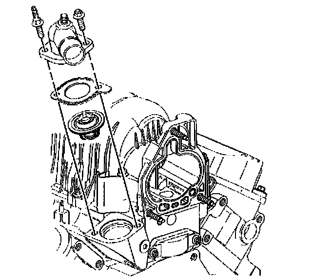 2. Install the gasket and the water outlet housing.