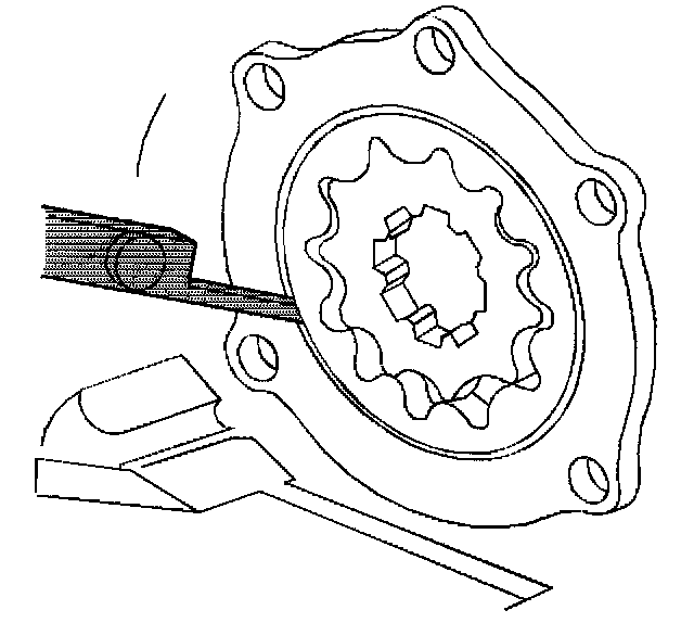 7. Measure the inner oil pump gear tip clearance.