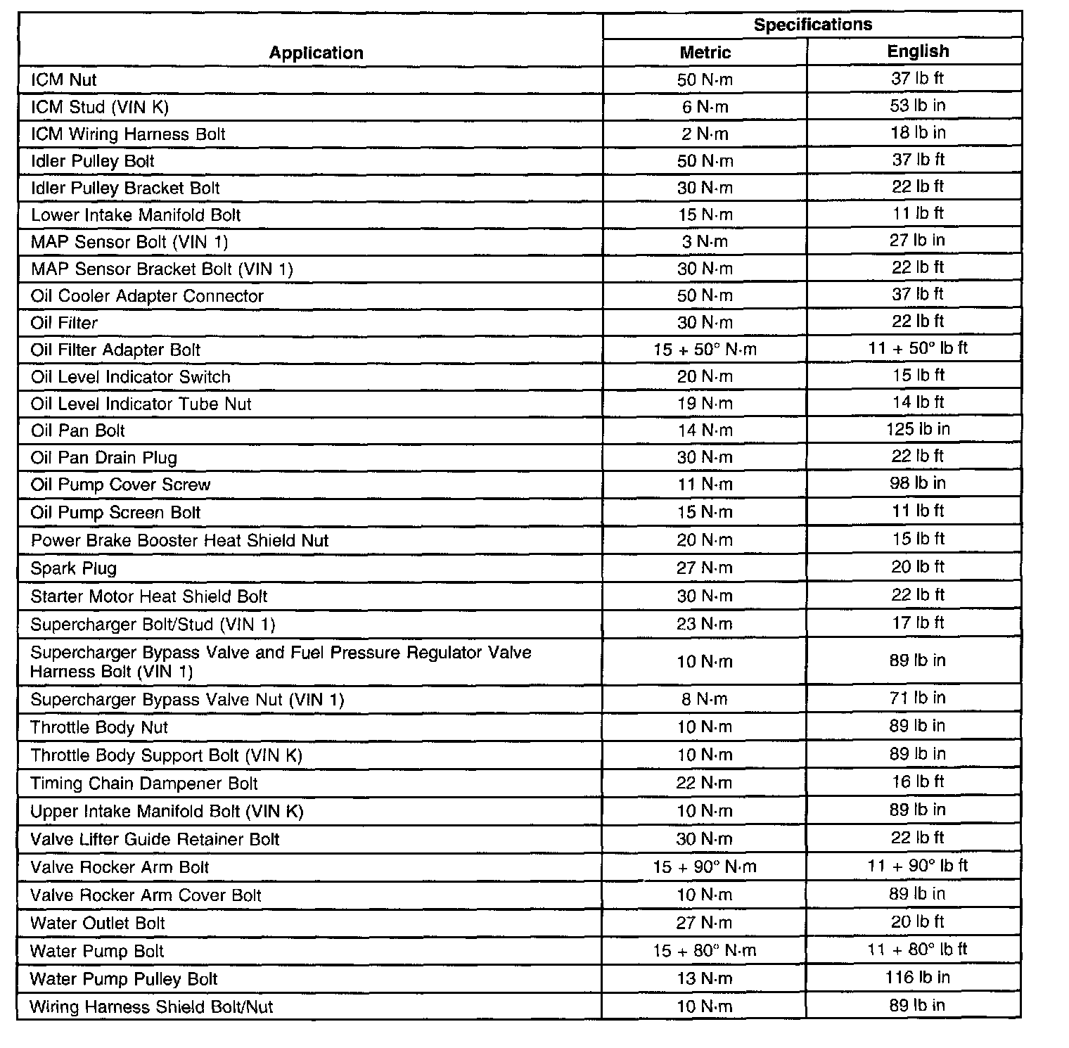 Fastener Tightening Specifications