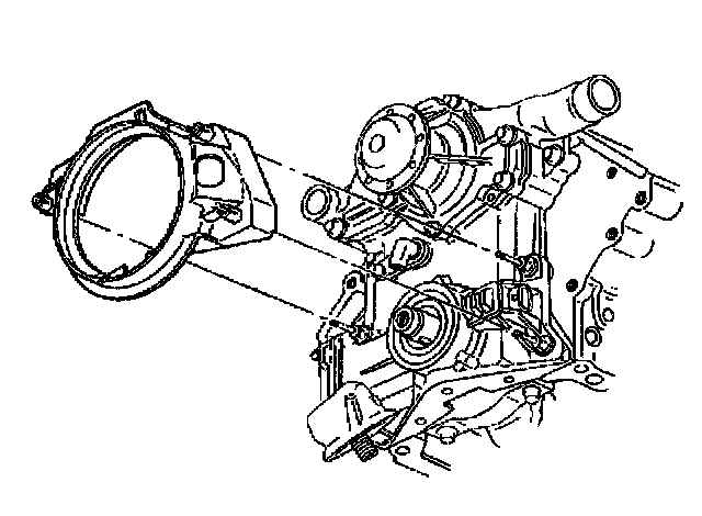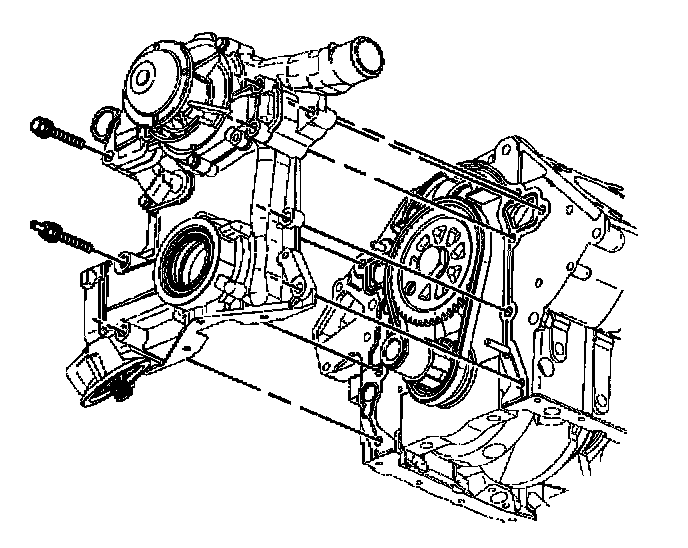 18. If replacing the engine front cover, remove the water pump from the engine front cover. Refer to Water Pump Replacement in Cooling System.