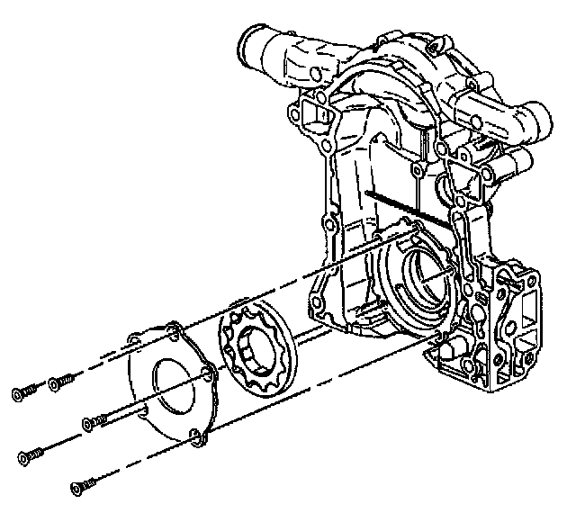 19. If replacing the engine front cover, remove the oil pump cover and gear set from the engine front cover. Refer to Oil Pump Cover and Gear Set Replacement.