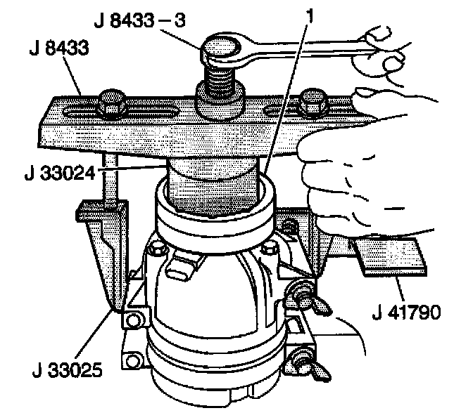 5. Turn the center forcing screw of the J 8433 to press the clutch coil onto the front head until the clutch coil is fully seated.
