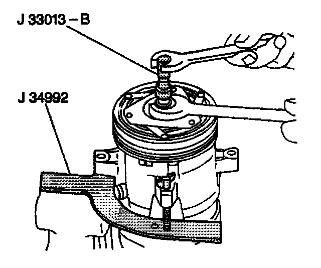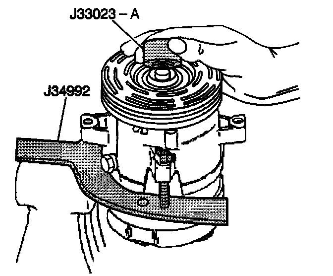 8. Install the J 33023-A on the front head of the compressor.