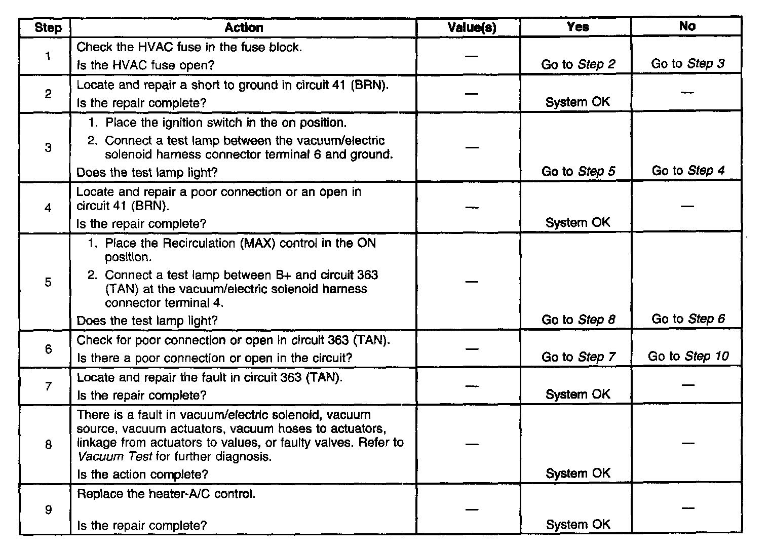 Symptoms - HVAC System - Automatic