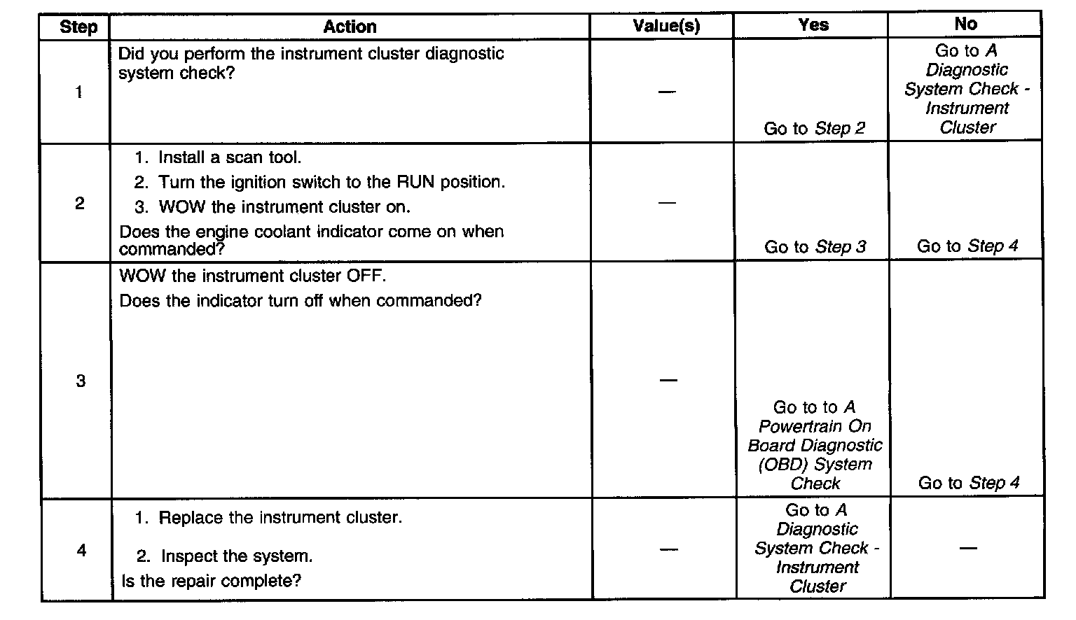 Engine Coolant Temperature Indicator Inoperative: