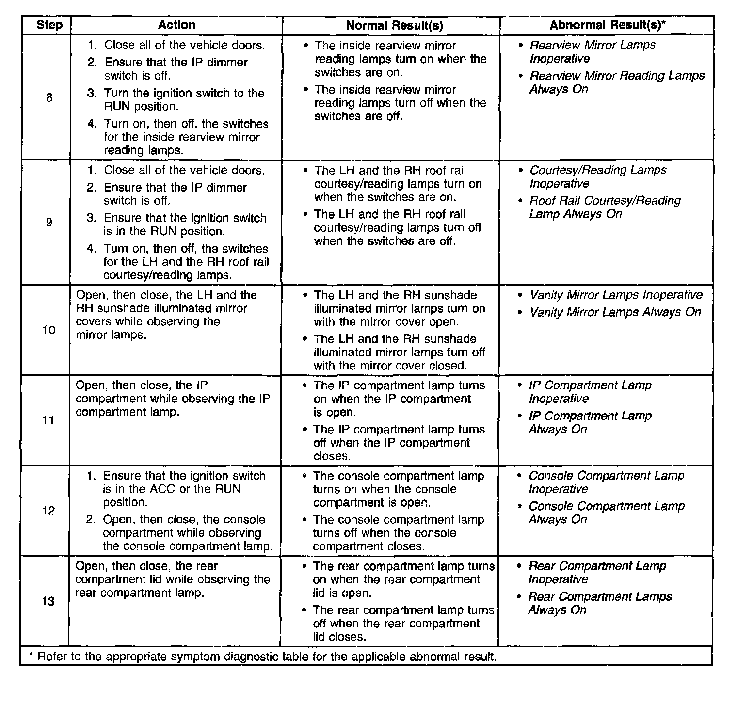 System Check - Interior Lamps