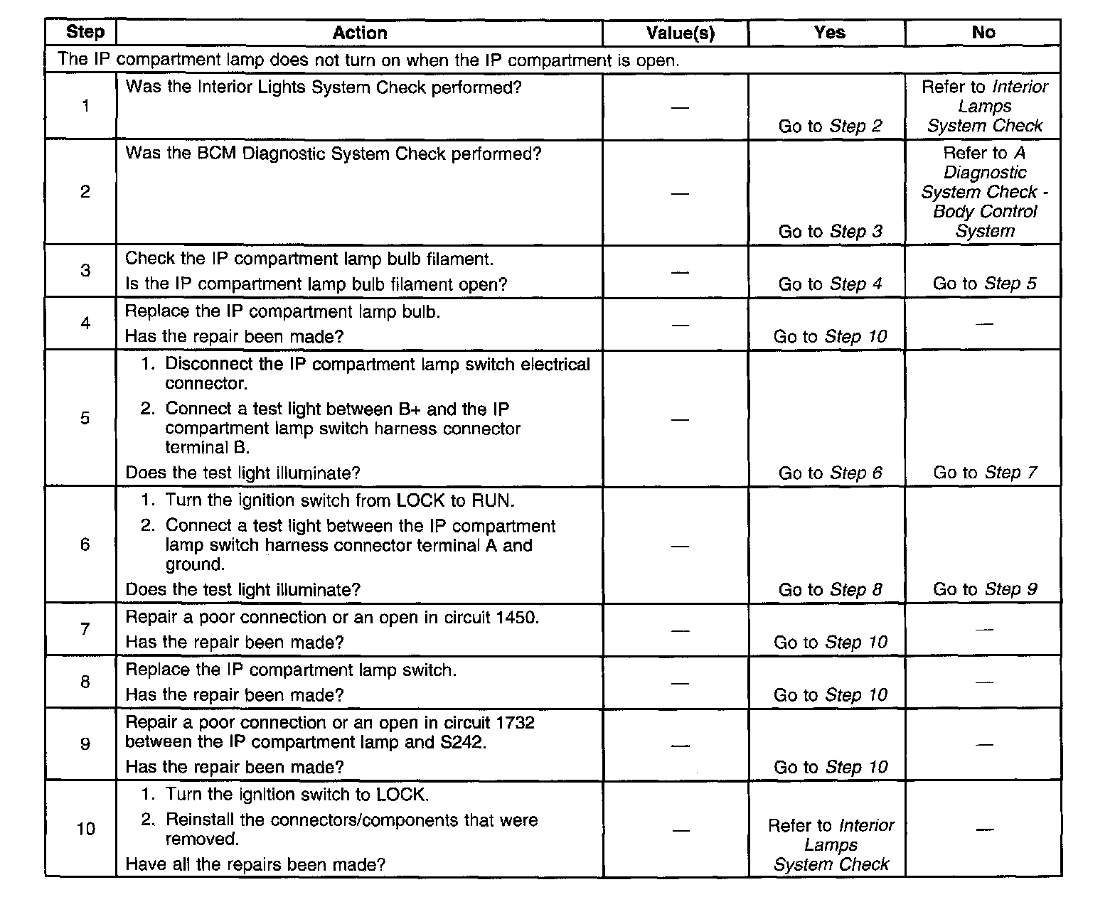 IP Compartment Lamp Inoperative: