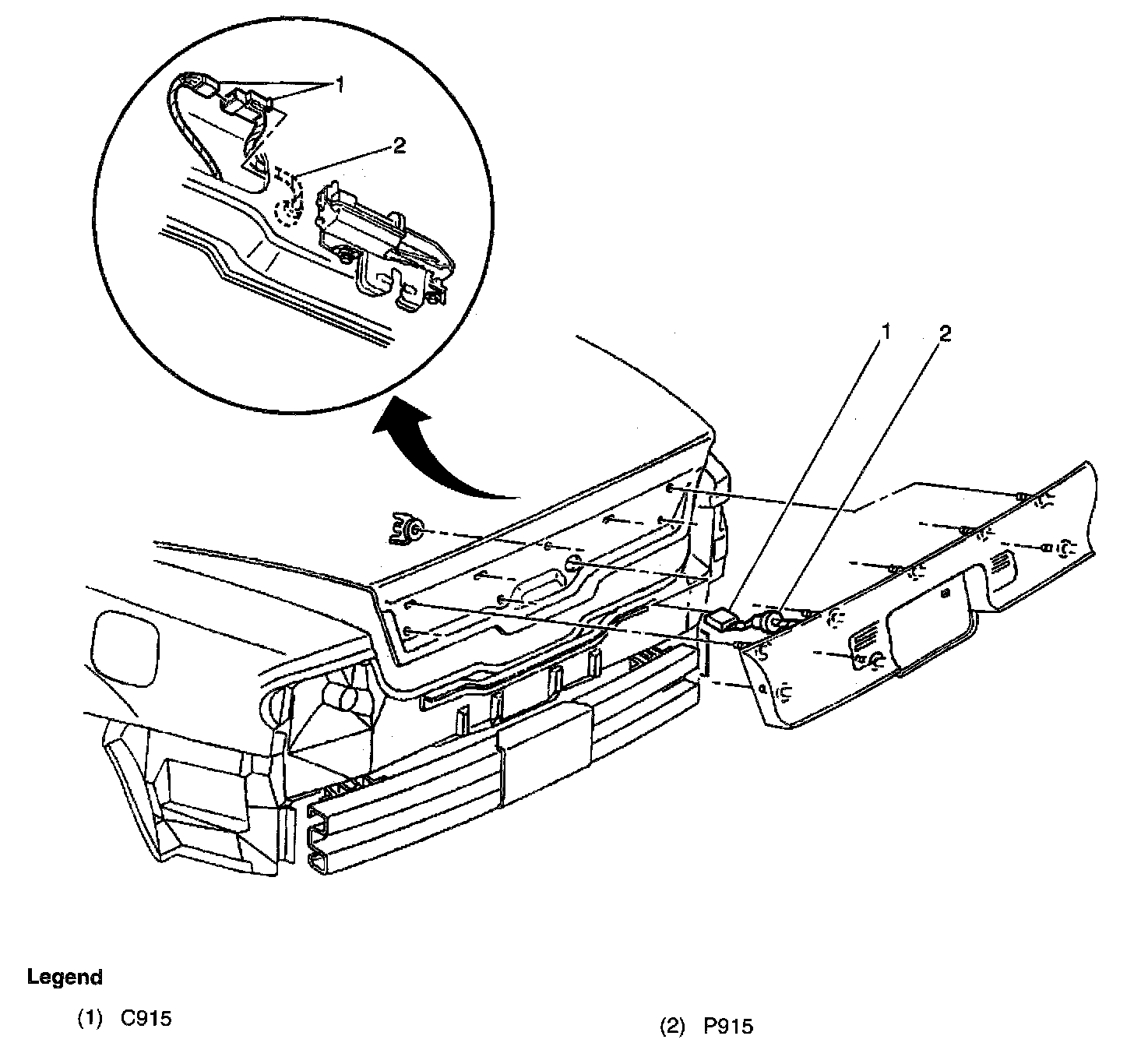 (4 cavities) Rear compartment lid wiring harness to the backup lamp wiring harness, in the center of the rear compartment lid applique