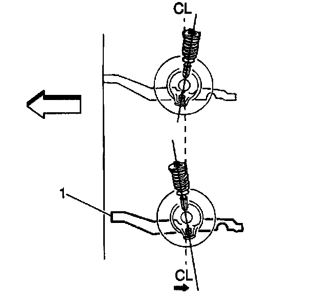 Setback applies to both the front and the rear wheels. Setback is the amount that one wheel spindle may be aligned behind the other wheel spindle. In the illustration, the left side frame (1) is moved toward the rear, causing a misalignment. Setback may be the result of a road hazard or a collision. The first clue is a caster difference from side-to-side of more than one degree.