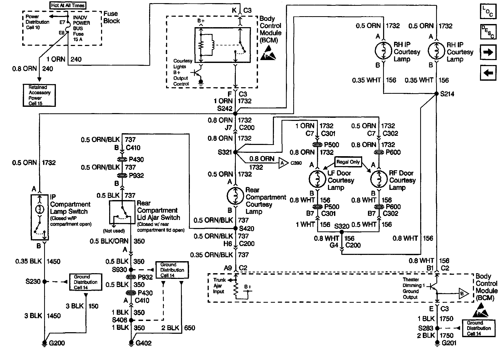 Body Control Module Schematics: Interior Lights Control - Inadvertent Battery Rundown Protection And Theater Dimming 1 Ground Output: