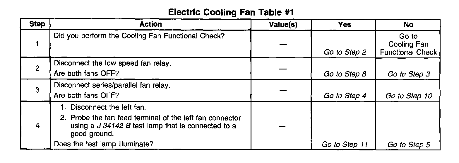 Electric Cooling Fan Table #1