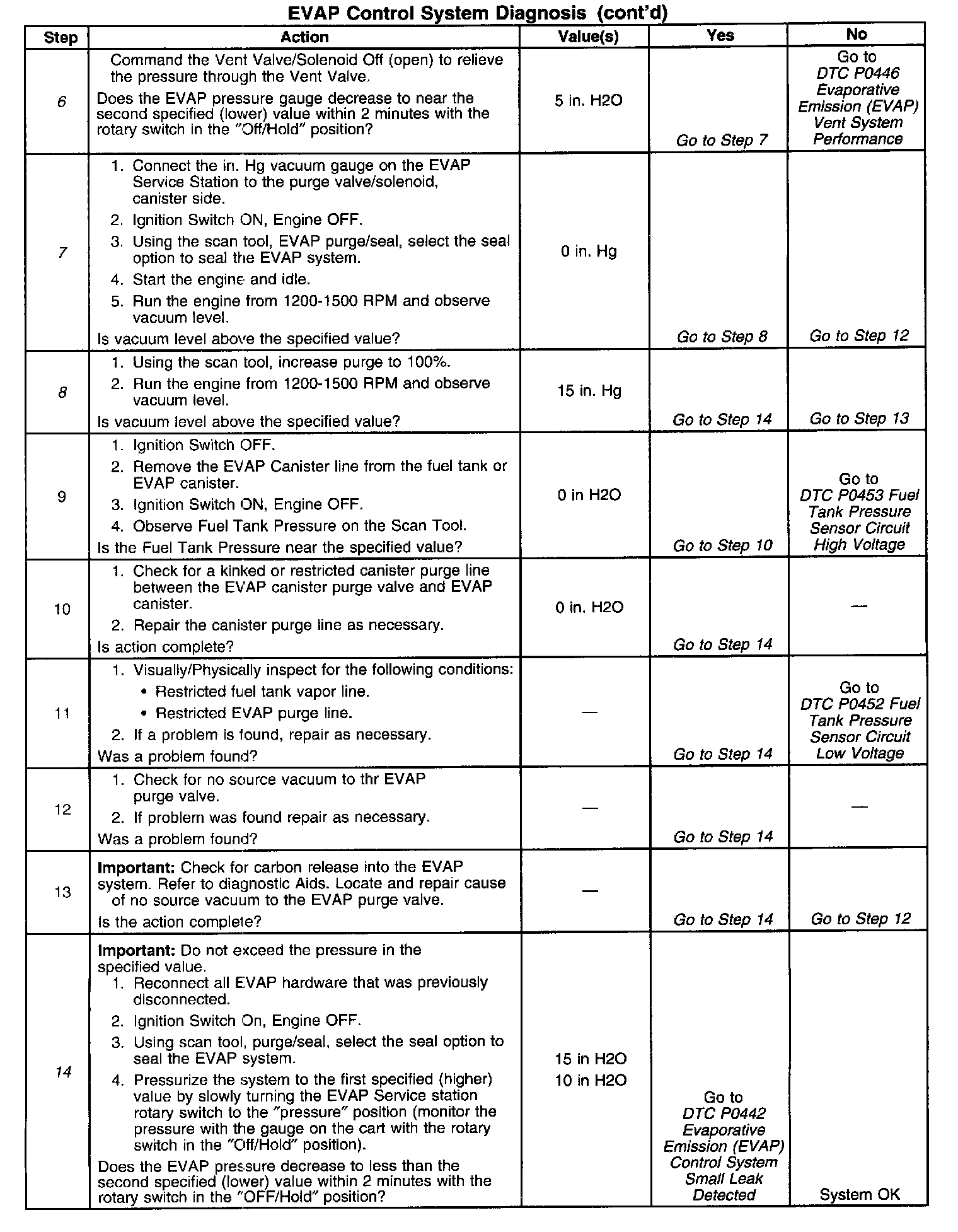 7. Checks for a leaking or stuck open EVAP canister purge valve/solenoid, The scan tool should read within ±1.0 in. HG of the specified value.