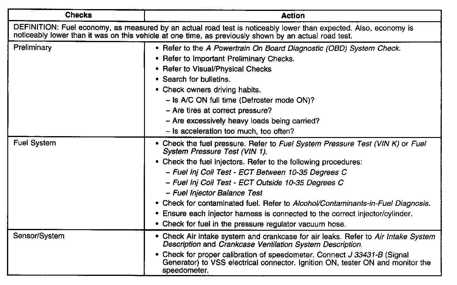 Poor Fuel Economy