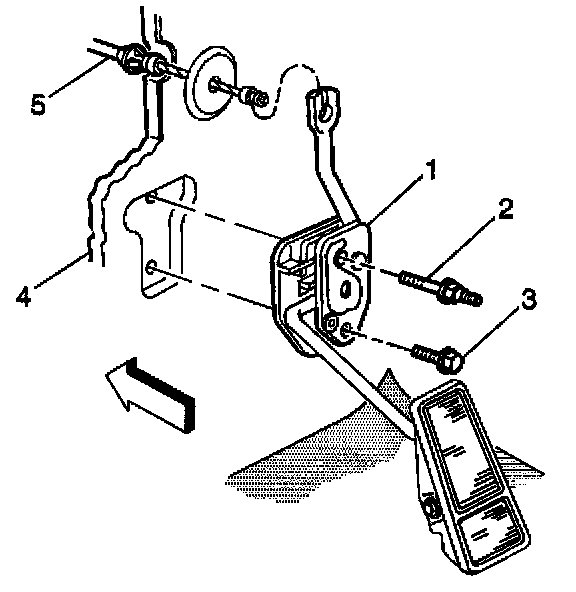 2. Disconnect the accelerator cable (5) from accelerator pedal (1).