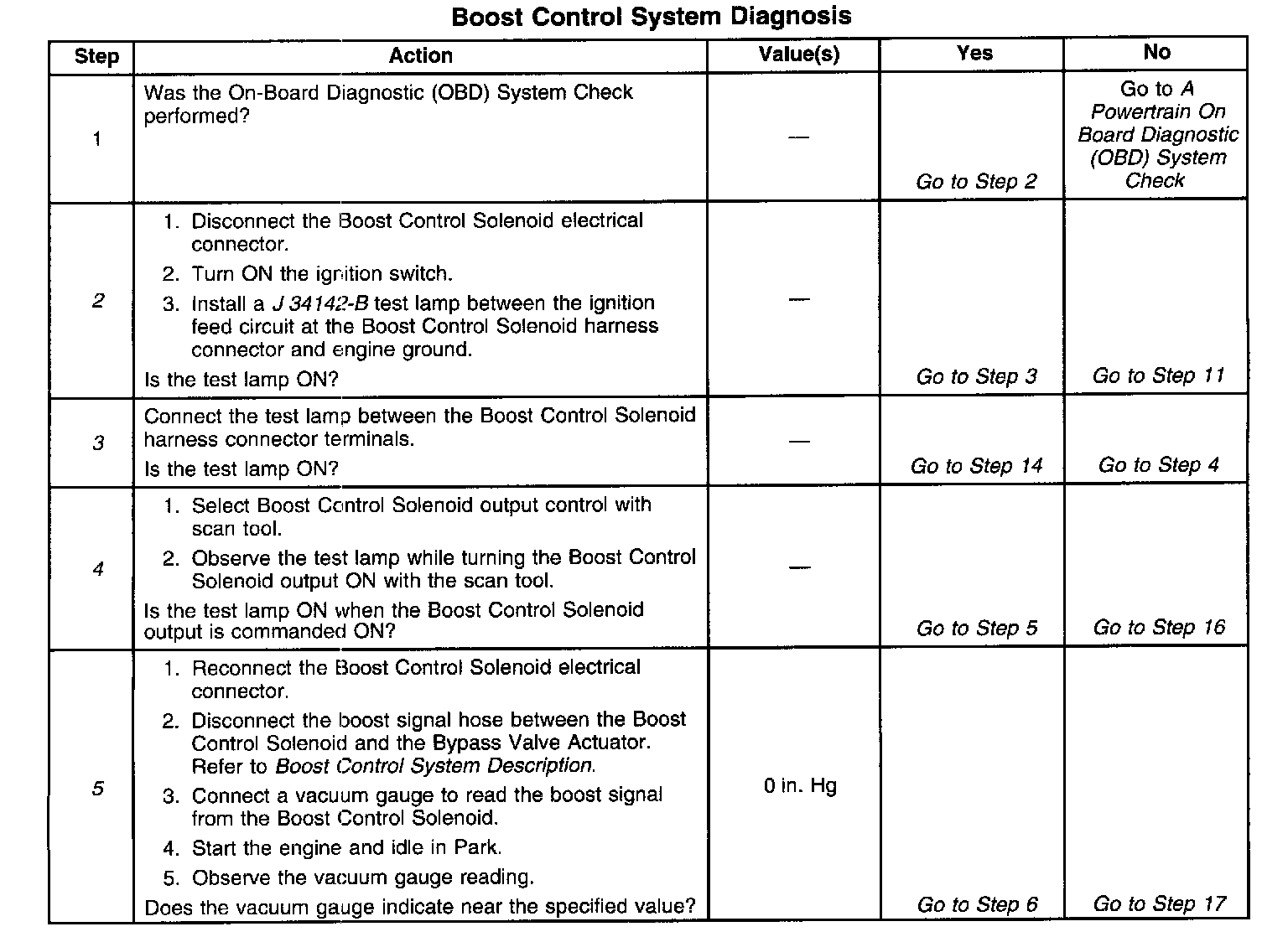 5. Checks for a malfunctioning Boost Control Solenoid (sticking open or leaking).