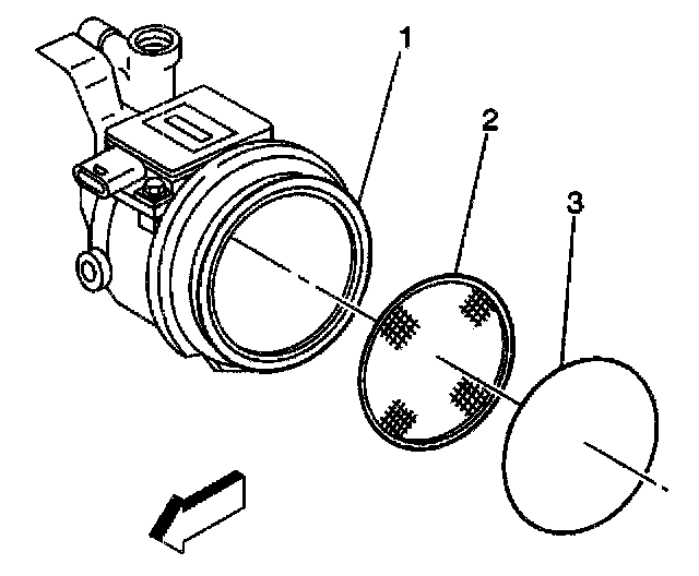 3. Remove the throttle body (1) air inlet screen (2).