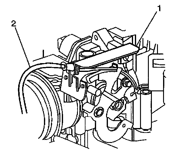 4. Disconnect the cruise control cable (1) to the bracket (2).