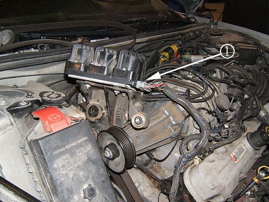 4. If present, remove any plastic (polypropylene) conduit (1) from the spark plug wires at the front of the engine (should only be found on spark plug wires 1 and 5).