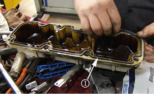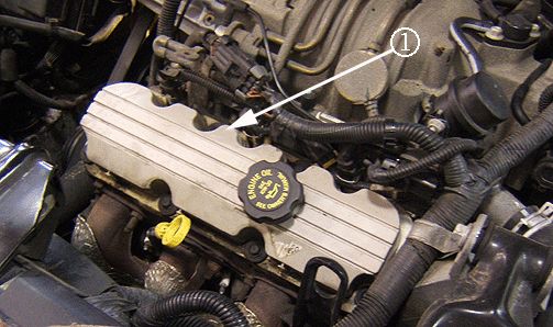 9. Remove the left or front engine valve cover (1).