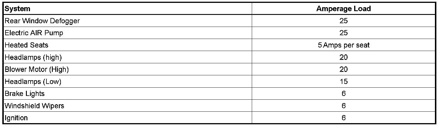2. When high current loads (blower, rear defogger, headlamps, cooling fan, heated seats, power seats, electric "AIR" pump, or power windows) are operating or cycled "ON", the generator's voltage regulator can delay the rise in output. This effect, usually at lower engine speeds, can take up to ten seconds to ramp up the generator output. This is done to avoid loading the engine severely. To increase current (amperage) output, additional torque is consumed by the generator. The engine computer (ECM/PCM) will ramp up engine/generator speed in small steps so engine speed variations are not noticeable to the driver.