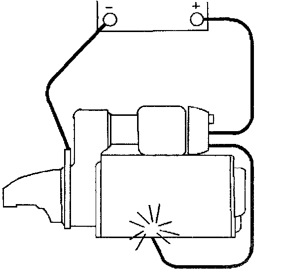 CAUTION: Keep fingers and tools away tram the opening in the starter drive housing while performing the Starter No Load Test. The strong shifting action of the solenoid could cause personal injury or damage as the drive pinion moves into the cranking position and spins.