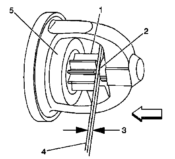8. Measure the distance between the pinion (1) and the pinion stop collar (2) using feeler gauges (4).