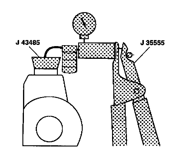 6. Place the J 43485 on the power steering pump reservoir filler neck.