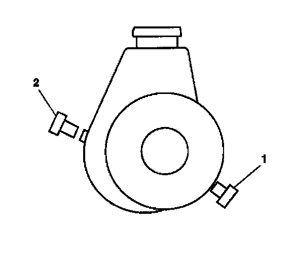 2. Install the plugs (1), (2) supplied with J 43485 into the power steering return port and the power steering pressure port.