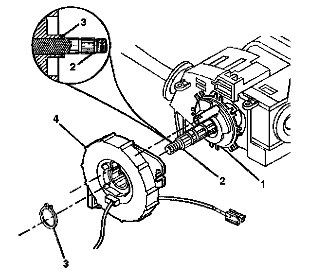 5. Remove the retaining ring (3) from the groove in the steering shaft assembly (2).
