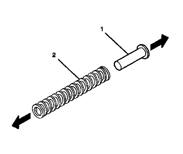 4. Remove the spring guide (1) from the tilt spring (2).