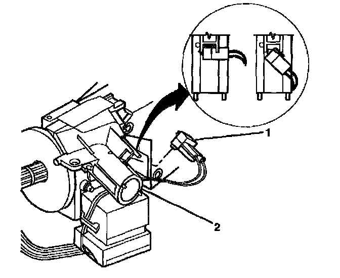 6. Remove the key alarm connector (1) from the lock module assembly (2).