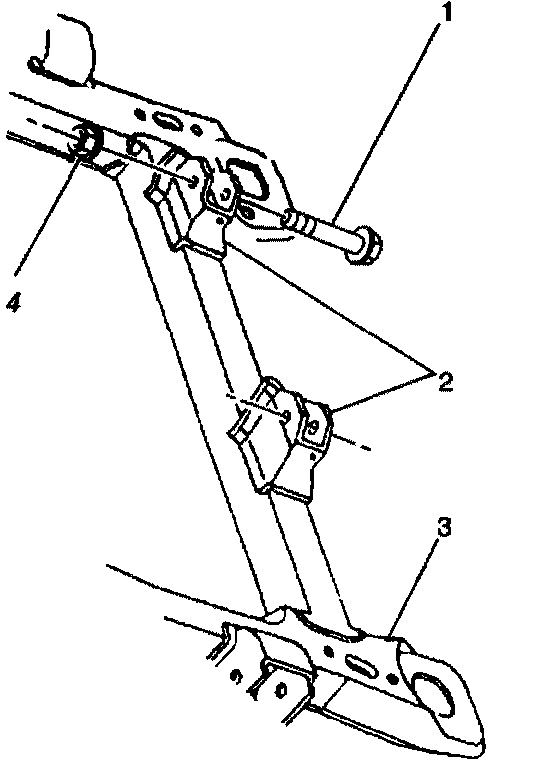 12. Remove the power steering gear mounting bolts and nuts (1), (4).