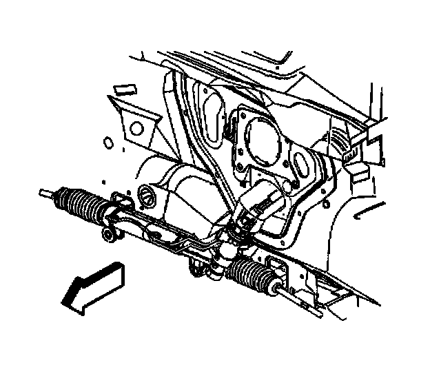 13. Remove the power steering gear through the left wheel opening.