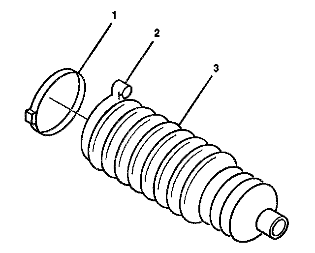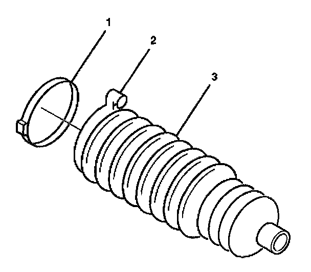 6. Install the rack and pinion boot (3) onto the inner tie rod assembly (2).