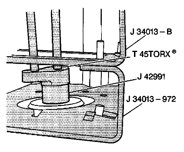 4. Use a 45 Torx(R) socket in order to hold the strut shaft. Remove the strut mount nut by turning with J 42991 Strut Rod Nut Socket.