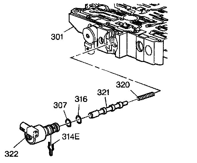 8. Remove the O-ring seals (307, 316) from the PC solenoid valve (322) ONLY if they are damaged.