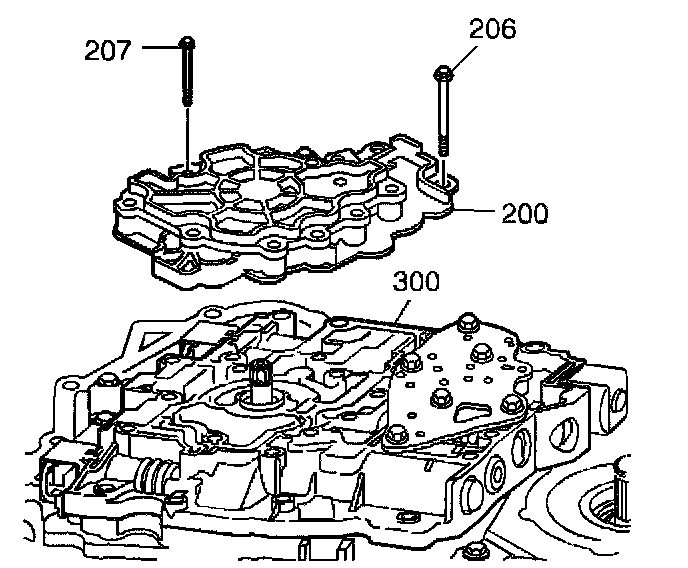 21. Install the oil pump assembly (200) onto the control valve assembly (300).