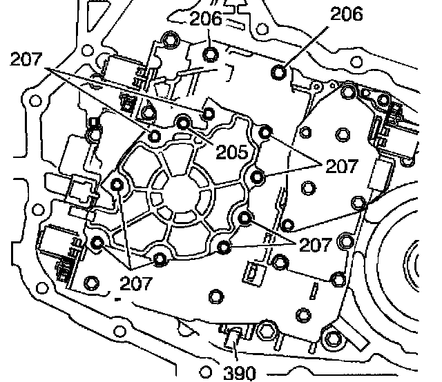 22. Install the two pump body to case bolts (206) and the nine pump cover to case cover bolts (207).