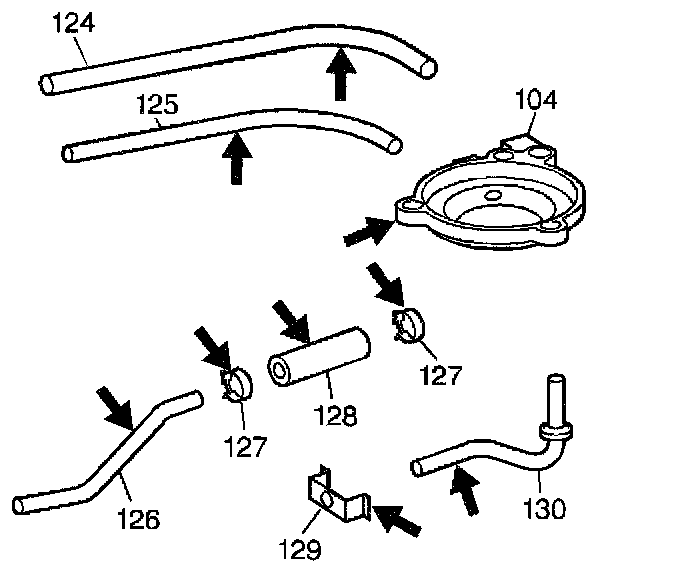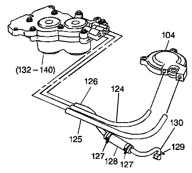 3. Inspect the servo and lube oil pipe components (124-130) and the 2-1 manual band servo cover (104) for the following conditions: