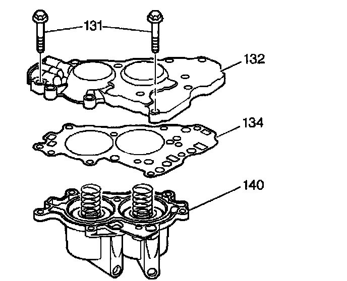 10. Assemble the accumulator cover spacer plate assembly (134) and the accumulator cover (132) onto the accumulator housing (140).