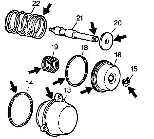 5. Assemble the servo piston return spring (22) onto the servo assembly.