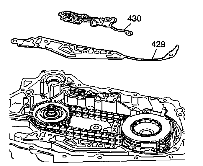 4. Remove the upper (430) and the lower (429) case cover gaskets.