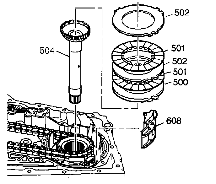 Remove the fourth clutch fiber and steel plates (501, 502).