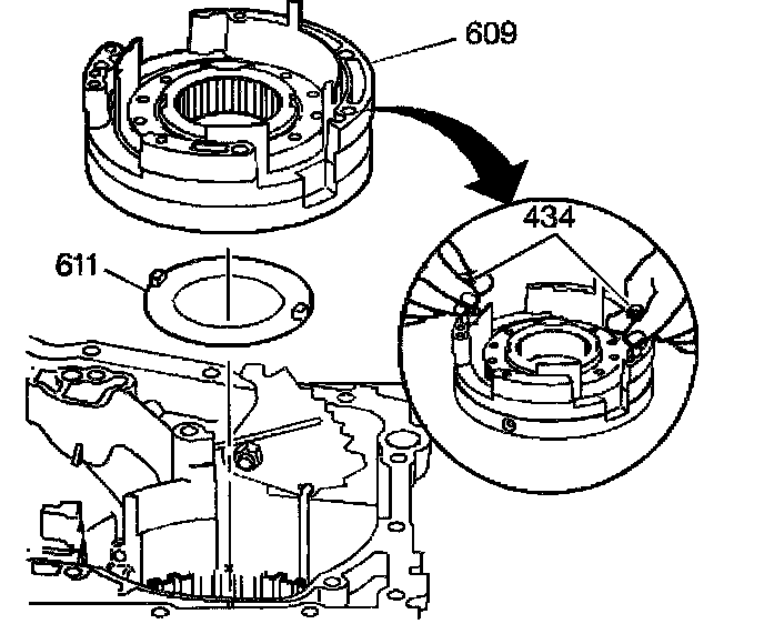 3. Remove the thrust washer (611) from the second clutch housing. The washer may be stuck to the support assembly.