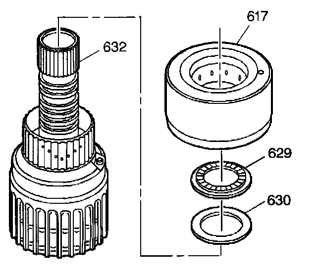 8. Lift the second clutch housing assembly (617) off of the input clutch housing.