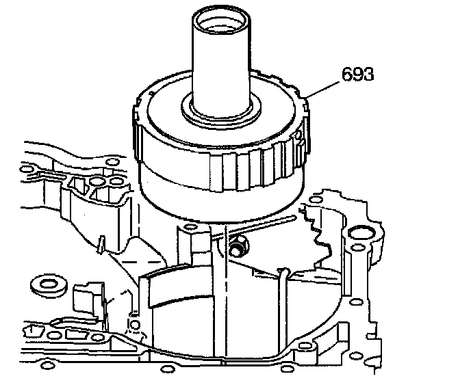3. Lift the differential carrier internal gear assembly (693) out of the case by depressing the park pawl assembly in order to clear the case.