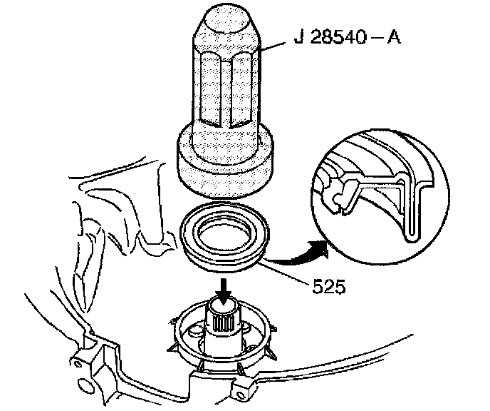 Use J 28540-A and a mallet in order to install the torque converter oil seal (525).