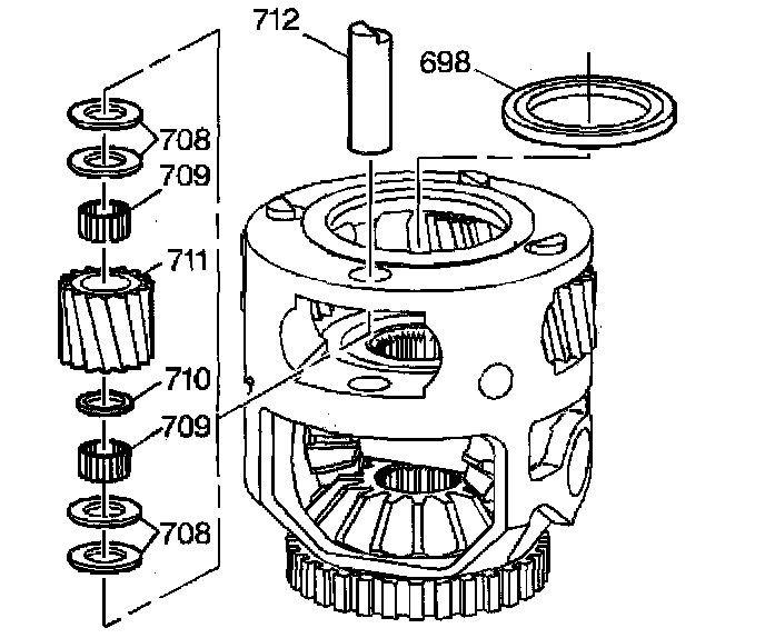 8. Remove the differential pinion gears (704).