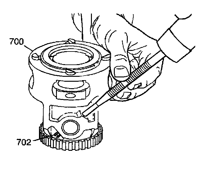 6. Use a drift punch and a mallet in order to remove the differential pinion gear shaft pin (702).