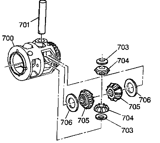 11. Remove the differential side gear thrust washers (706).